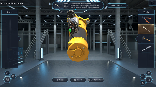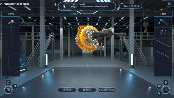 Phần mềm bao gồm các bài học từ tháo rời đến lắp đặt các linh kiện điện chủ chốt, cho phép người học chuyển đổi linh hoạt giữa chế độ hướng dẫn – thực hành – đánh giá, đồng thời ghi nhận thao tác và thời gian luyện tập, giúp đánh giá chính xác kỹ năng vận hành thực tế của sinh viên.