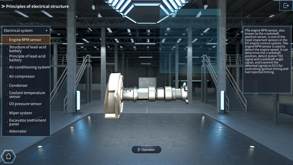 Phần mềm tái hiện toàn bộ quá trình tháo – lắp, kiểm tra và trình diễn nguyên lý hệ thống điện của máy đào thông qua công nghệ mô phỏng 3D tỉ lệ 1:1.