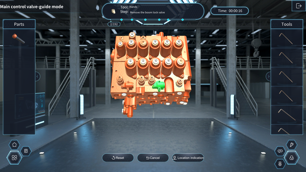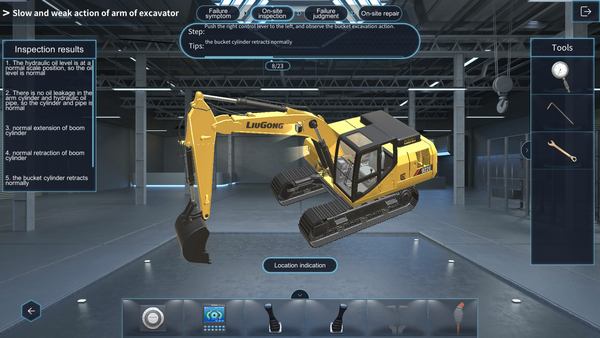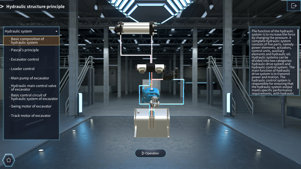 Phần mềm được phát triển dựa trên hệ thống thủy lực của máy xúc LiuGong CLG922E và máy xúc lật CLG856H, mô phỏng tỉ lệ 1:1 theo cấu trúc thực tế. Dựa trên dữ liệu thực và nghiên cứu của các trường đại học, hệ thống tái hiện toàn bộ quy trình tháo – lắp, kiểm tra, vận hành và trình diễn nguyên lý hoạt động của các bộ phận thủy lực trong máy xây dựng.